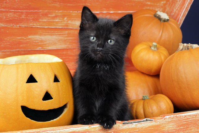 Is een zwart pluizig kopje met licht blauwe oogjes en spitse oortjes niet veel aantrekkelijker dan een plompe pompoenenkop ? Ook al lacht de pompoen , hij verliest bij de beweeglijkheidstest . Bang van een zwarte kat ? Dat is larie en apenkool : een zwartkop is een charmeur !