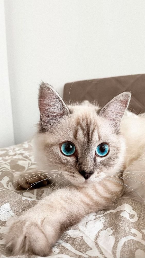 Een poesje met blauwe oogjes heeft altijd een streepje voor ... Die kijkers lijken magisch : je wordt er onweerstaanbaar naartoe getrokken . Wat schuilt er in het kopje van blauwoogje ? Gebruikt ze haar charme om je aan haar te binden en wil ze het troeteldier bij uitstek zijn ? Zoveel vragen ... om te behagen !