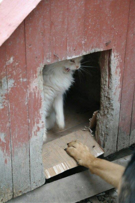 Nee Woef , ik slaap hier vandaag ... Knoop dat maar goed in je oren . Eindelijk meer vrijheid moet gevierd worden . Je houten hok lijkt me een ideale plek om nieuwe ervaringen te verzamelen . Je moet niet op je achterste poten gaan staan : je mag mijn comfortabele mand inpalmen . Geef me een high five !