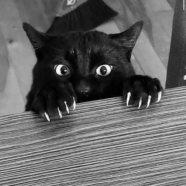 Mijn speurneusje voert me naar de keuken : ik ruik vers vlees . Ik kijk op het aanrecht en zie een mals stukje biefstuk liggen . Automatisch komen mijn scherpe klauwtjes te voorschijn : kan er bijna aan ... Mijn baasje glimlacht om mijn interesse . Ik mag proeven als het gebakken is :mijn neus krult !