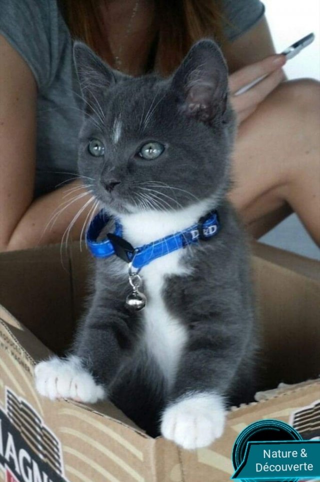 Hoort een halsbandje met kokertje wel bij schattige poesjes ? Ik heb er al aan geprutst , zodat het wat losser kwam , maar vind het een naar gevoel . Vanuit mijn gezellige , kartonnen doos naast mijn baasje wil ik protesteren : wat doe je me aan ? Zo word ik meer kattig dan schattig !