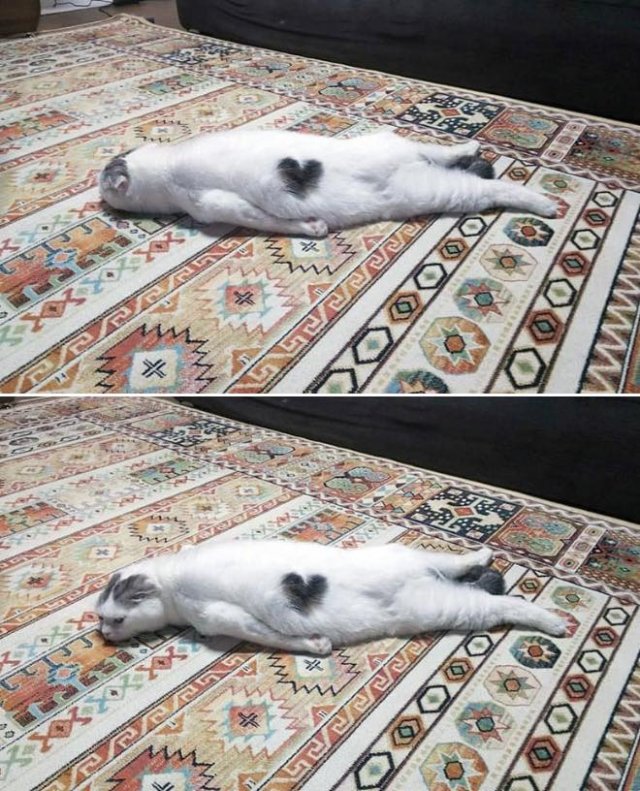 Hoewel ik een schattig , grijs hartje op mijn pels draag en me poeslief gedraag , heb ik er mijn buik van vol : die luide muziek werkt op mijn zenuwen . Daarom leg ik me op mijn buik op een fantasierijk tapijt en sluit mijn oortjes af . Neen , ik leef nog , maar dimmen nu is nodig voor ik schimmen zie !