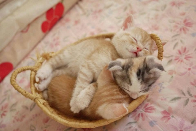 Liggen wij in een broodmandje ? Dat maakt niet veel uit : lekker knus bij elkaar telt , alle goede dingen bestaan immers uit drie !