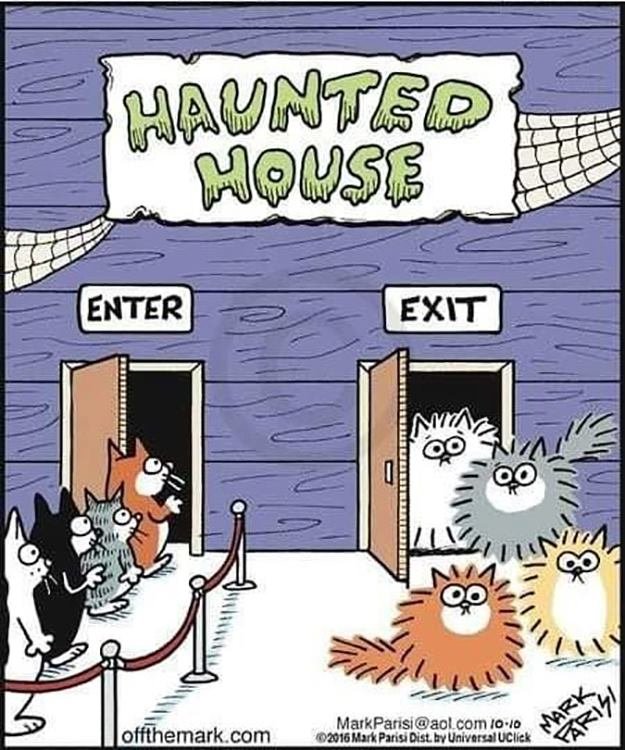 Er staat een lange file ongeduldige poesjes voor de ingang , want ze houden van een thriller ... Maar aan de andere kant komen er lijkbleke poesjes buiten met haartjes die alle kanten uitsteken . Zo'n griezelige vertoning gaat hun petje te boven . Beter met de pootjes op de grond blijven om niet meer van angst te verstijven !