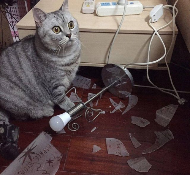 Waarom worden staande lampen verbonden met een wirwar aan draadjes , op een hoekje geplaatst en om niet te verblinden bedekt met een glazen kap ? Ik ben er niet aan geweest : de voortdurende trillingen door de verbouwingswerken hebben de wankele lamp verschoven en boem ... Ik ben dus niet stout zonder fout !