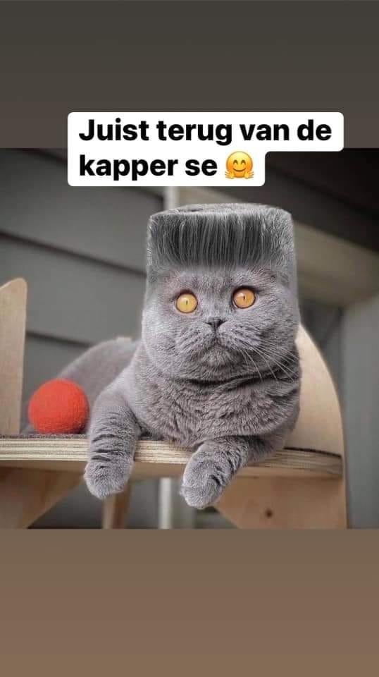 Ik heb een hekel aan haartjes in mijn ogen ... De hondenkapper heeft hiervoor een oplossing bedacht : met wat gel staan nu mijn kophaartjes kaarsrecht . " Wat een mooi broske " hoor ik , " ze geven je een stoer uitzicht . " Gaan de andere katten me nog herkennen ? Exentriek geeft meer dynamiek !