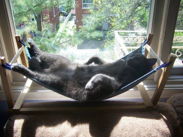 Voor het raam in een hangmat in het zonnetje ... Formidabel !