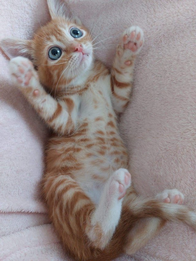 Vanop een warm fleece dekentje lig ik , in een houding van volledige overgave , naar je te staren . Mijn grote , blauwe kijkers verwachten heerlijk vertroeteld te worden . De charme van een fluweelzachte pels is onweerstaanbaar . Zo 'n schattig moment kikkert je drukke leven op !