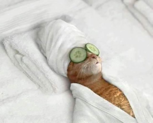 Om uiterlijk aantrekkelijk te blijven moet je af en toe eens langs een beauty salon gaan . Deze poes symboliseert de zorgen die je er ontvangt . Een gezonde poes likt haar pels na iedere activiteit , want ze wil er stralend uitzien . Alle actie roept reactie op om het evenwicht te herstellen . Laat het resultaat hyper mooi zijn !