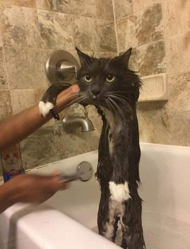 Niet plezant zeker zeggen is spotten met de wasroutine die ik regelmatig moet ondergaan . Ik woon in een appartement en moet binnen blijven . Mijn baasje onderschat mijn eigen wasbeurt , hoewel die pelsvriendelijker is . Door het douchewater zie ik eruit als een slons , maar de droger tovert mijn uiterlijk om in een aaizacht Snoesje . Na lijden komt verblijden !