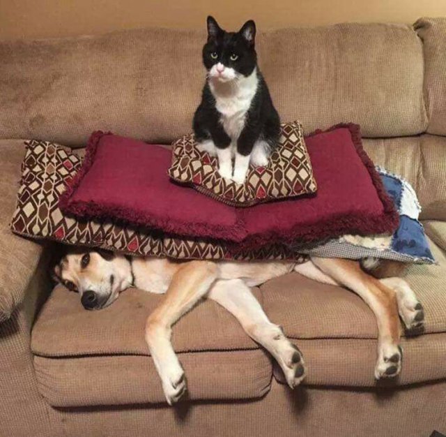 Ik weet wat ik wil en daarom noemt men mij " superieur " ten opzichte van de hond Lou . Bovenop drie kussens zit ik op mijn troon , terwijl Lou eronder ligt uitgestrekt . Op een slaafse manier volgt hij de wil van zijn baasje wat ik kritisch bekijk . Af en toe lief zijn , O.K. , maar men moet ook rekening houden met mijn voorkeuren . Wederzijds respect is ideaal !