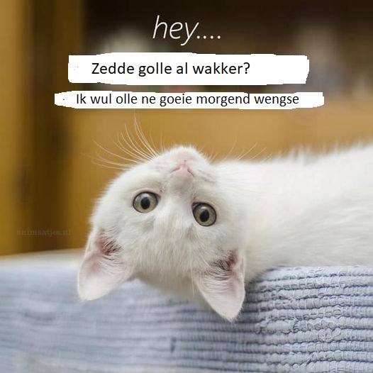 De morgenstond heeft goud in de mond ... Het is een tijdstip waarop we meestal uitgerust zijn en met nieuwe energie kunnen beginnen . Het lieflijke snoetje van dit poesje symboliseert een goeie morgen . Radio 2 gebruikt zelfs de titel van dit klassieke liedje om zijn luisteraars moed in te spreken . Hierdoor kan men het humeur van velen opkrikken en raar maar waar het werkt aanstekelijk !
