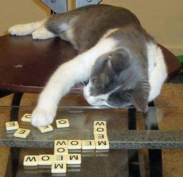 " Moew " is mijn trefwoord en vraagt om aandacht . Ik slaag er zelfs in om het viermaal in de scrabble puzzel te verwerken . Dan word ik als een slimme kater bestempeld en beloond met een knuffel en een extra snoepje . Verbazing opwekken maakt je sympathiek . Verlies me dus niet uit het oog : de wonderen zijn de wereld niet uit !