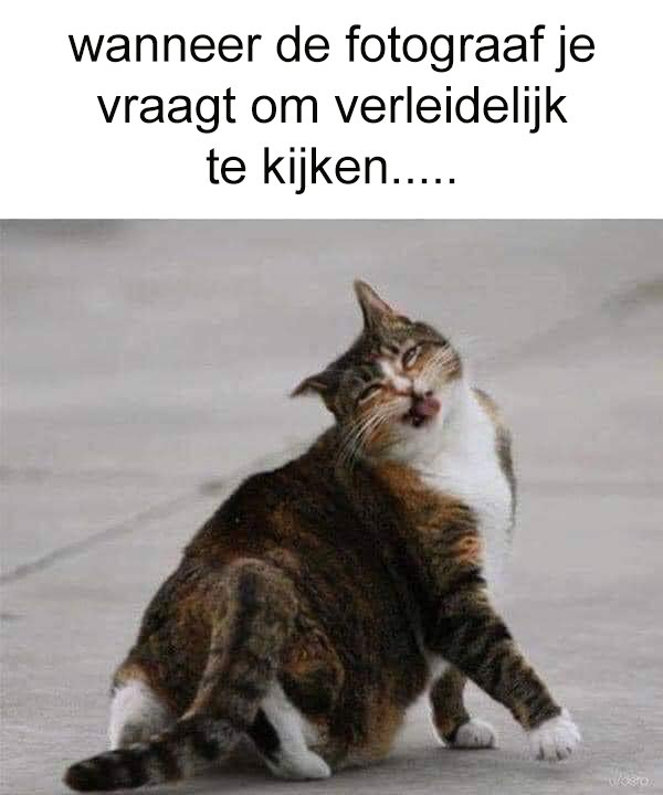 Hoe ziet verleidelijk kijken eruit ? Ik veronderstel dat onze meningen erg verschillen . Terwijl je denkt aan een lieflijke snoezepoes , wil ik in de eerste plaats je uitdagen door mijn vinnig tongetje uit te steken . Op de voorgrond prijkt mijn achterwerk met een prachtige staart . Ik draai mijn kopje schuin naar je toe en vernauw mijn oogjes tot spleetjes . Wees snel , want dit unieke beeld zal in een flits weer verdwenen zijn !