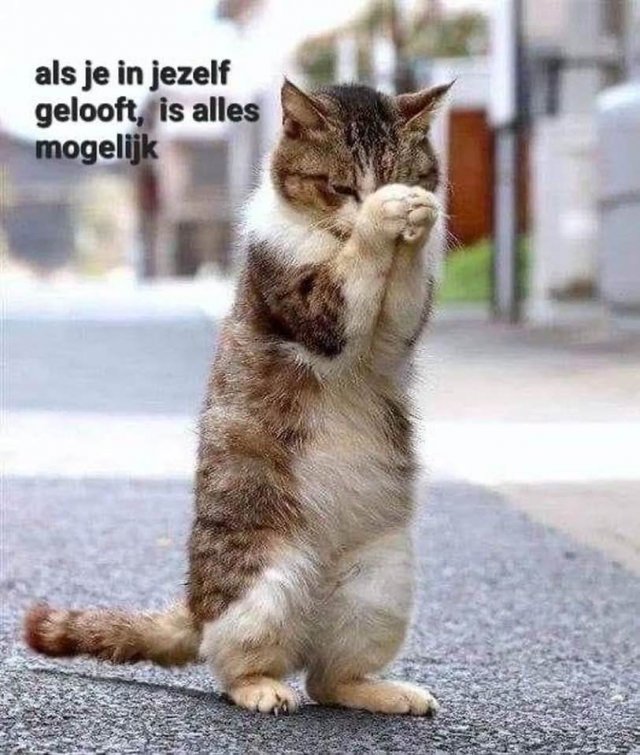 Ik sta flink rechtop , houd mijn voorpootjes voor mijn slim neusje en denk even diep na ... Als je in jezelf gelooft , is alles mogelijk ! Met mijn spitsvondig neusje ga ik op pad : ik laat me niet beetnemen , maar zet telkens stapjes in de goede richting om mijn doel te bereiken . Hoera , eindelijk ben ik met mijn neus in de boter gevallen !