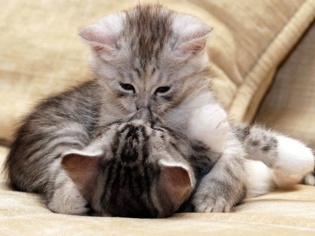Ik win het partijtje rollebollen , want ik heb mijn broertje gevloerd . Hij ligt " knockout " op het deken . Als beloning volgt een partijtje neuzeneuzen ... Wat voel ik me fier !