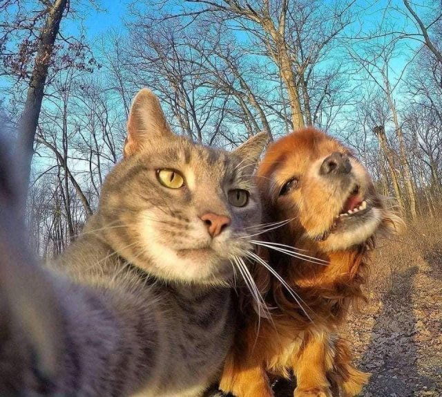 Soms ontstaan er merkwaardige vriendschappen ... Ook Djurre , de hond van de buren , houdt van wandelingetjes zonder leiband . Als hij me opmerkt , wil ook hij frisse lucht happen . Eenmaal buiten gaan we samen op stap . Tussen de bomen snuffelen is een boeiende activiteit . Daarom blijven we vrienden , want vrijheid schept blijheid !