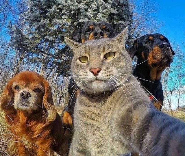 Alé , lachen mannen : als gezworen kameraden op de selfie : het maakt ons sympathiek ... Ik ben geen poesje om zonder handschoenen aan te pakken en dat beseffen deze honden : hun blaffen schrikt niet af . We maken een einde aan leven als kat en hond . Samen rennen door de natuur verbetert onze lichamelijke conditie en bezorgt ons een gelukzalig gevoel !