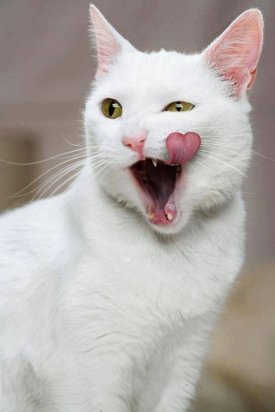 De lentekriebels zijn weer gearriveerd : het milde zonnetje laat de hormonen weer actiever worden . Mijn creatieve geest tovert een hartje aan het uiteinde van mijn roze tong . Ook de binnenkant van mijn roze oortjes fleurt mijn spierwitte , zachte pels op . Twijfel niet aan mijn mannequinallures . Met een kwinkslag nodigt een romantische valentijnskat je uit !