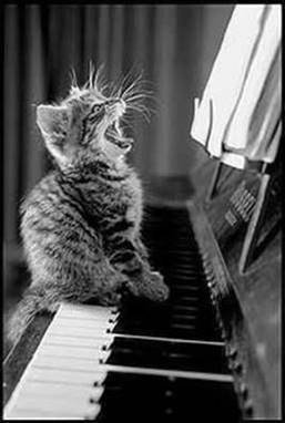 Ons schattig poesje is op de toetsen van de piano gesprongen en drukt er enkele in , waarbij ze haar muzikaal talent laat horen : miaauuw , miaauuw , miaauuw ... Niet vals zingen , Kitty ! Haar repertoire is beperkt , maar de manier waarop is oneindig . Luister aandachtig en steun haar initiatief : ontdek de snoezige charme !