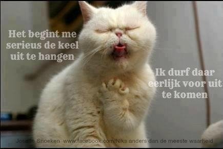 Het begint me serieus de keel uit te hangen en ik sluit daarom mijn oogjes ... Vakantietijd en hitte zijn voor pelsdragers onaangenaam . Ik houd niet van onregelmatigheden en aan puffen heb ik een hekel . Mijn luxe leventje wordt ernstig verstoord en ik durf daar eerlijk voor uit te komen . Sympathie opwekken door nadruk te leggen op gevoeligheden is nu een " modetrant " en ik draag mijn steentje bij !