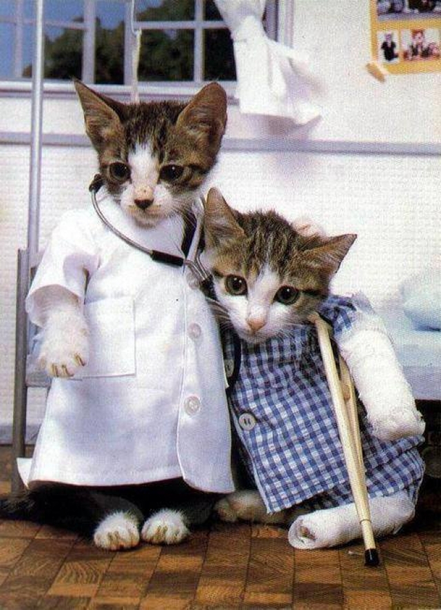 Dank zij onze goede dokter die mijn gebroken pootjes verzorgt , kom ik er weer bovenop . Geduld is echter broodnodig en kattenkwaad wordt op de lange baan geschoven ...