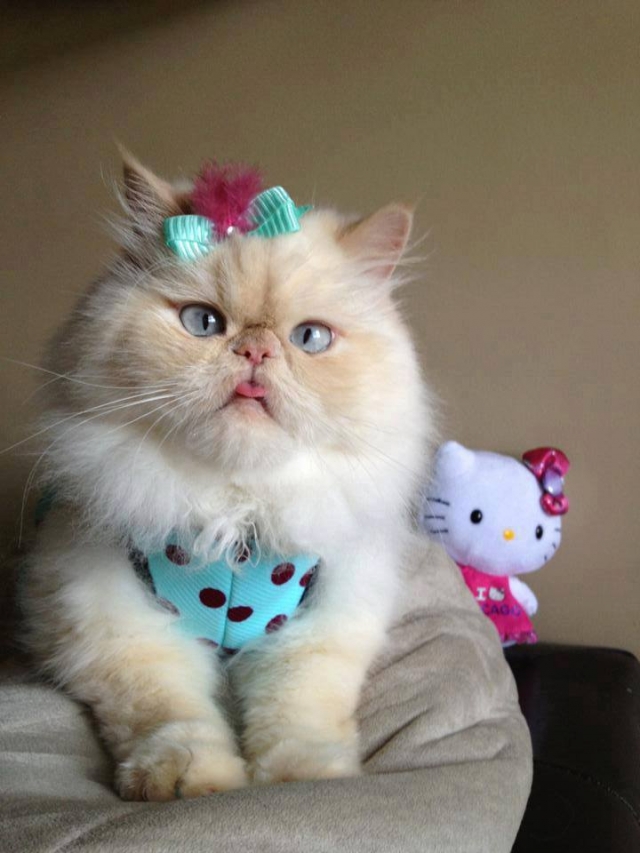 Een strikje in mijn pels en een bolletjesjurkje ... Zo ga ik op mijn knuffelpopje lijken , dat zich ook graag optut . We willen aandacht trekken door er origineel uit te zien . Het oog van de bewonderaar mag ook beloond worden !