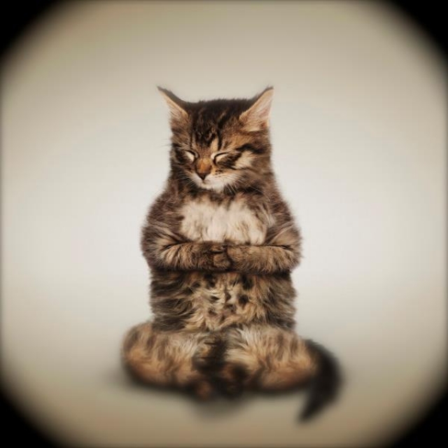 Wat een voorbeeldige yoga-houding ... Zelfs mijn oogjes zijn gesloten om me beter te kunnen concentreren . Rond mij ontstaat er een aura waarbinnen ik mediteer . Ik voel me rustig en vreedzaam . Ook eens proberen ?