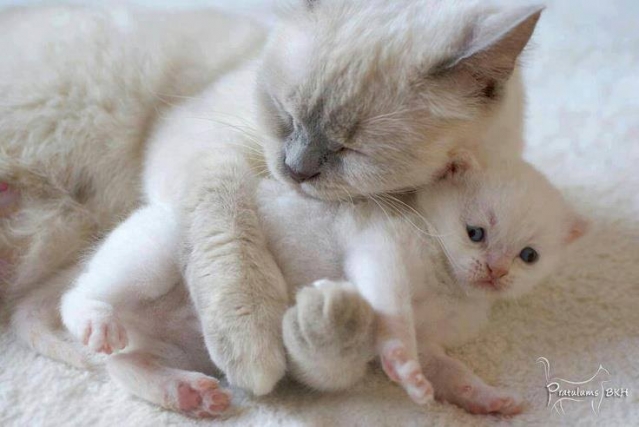 Blijf bij mama , klein mormel , want ik ben dat kattekwaad moe !