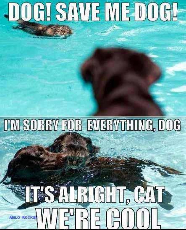hond redt kat uit zwembad!