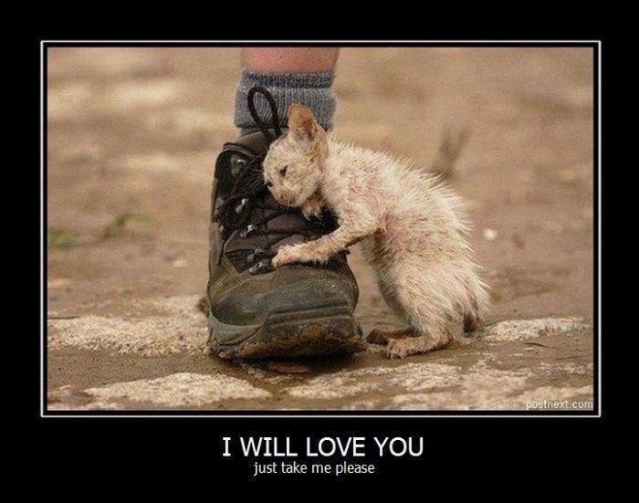 Help me uit de nood of de jager schiet me dood ... Sommige zwerfkatten hebben een triestig leven ! Als je er eentje adopteert , is het beestje bijzonder dankbaar .