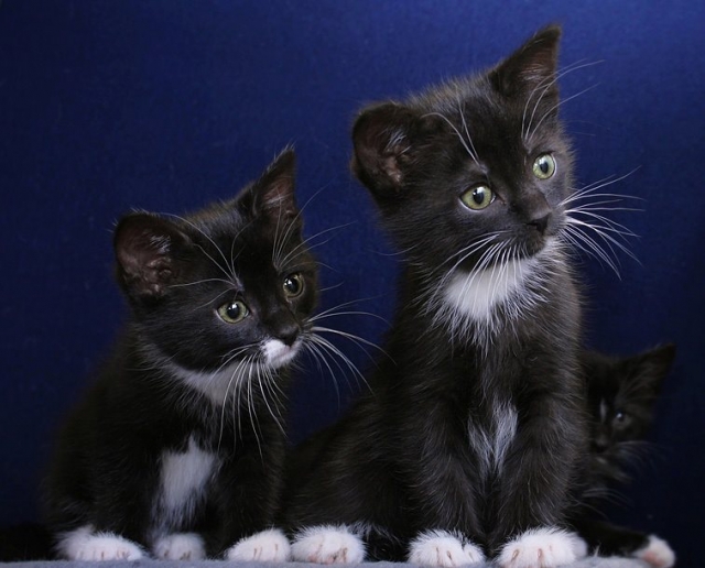 Witte snorharen , witte pootjes , witte slabbetjes en onderaan ook nog wat wit tegen een dominerend zwarte pels : dat maakt hen tot snoezepoezen ... Wat zijn ze hartverwarmend !