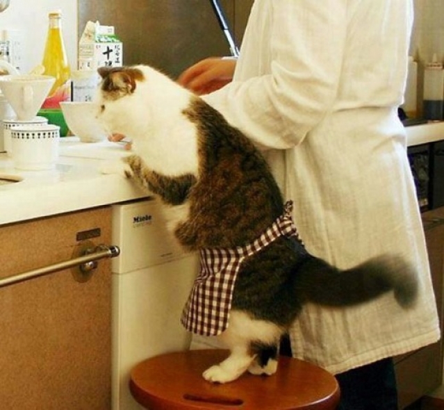 Eten wat de pot schaft ... Vers vlees is niet te versmaden . Met mijn fijne neus speur ik naar de lekkerste hapjes . Ook melk hoort daarbij : de champagne voor poezen !