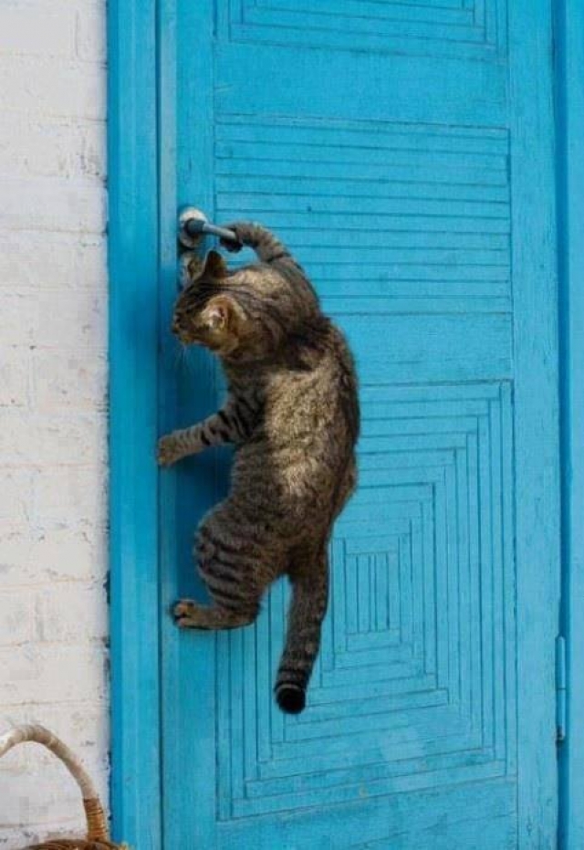 Waarom plaatsen de mensen niet vaker een kattenluikje in hun deuren ? Dan kunnen we in en uit als we willen . Dan hoeft al die acrobatie niet !