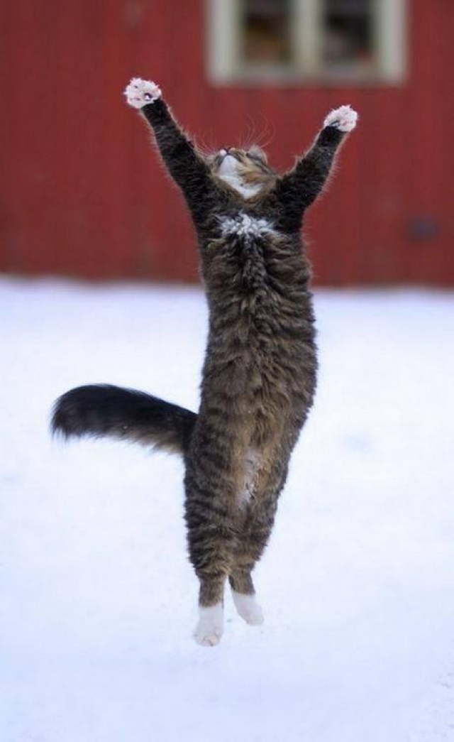 Whoepie , ik heb gewonnen ... Dat had je niet verwacht , he ? Nu maak ik een vreugdesalto om me af te reageren . Krijg ik nu een gouden medaille en een extra lekker hapje ?
