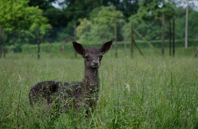 Ik ben juist geborenen, mijn mama komt mij niet helpen in de wei zij gaat bij de kudde reeën liggen.je ziet maar wat ik allemaal kan op mijn welpse krachten.