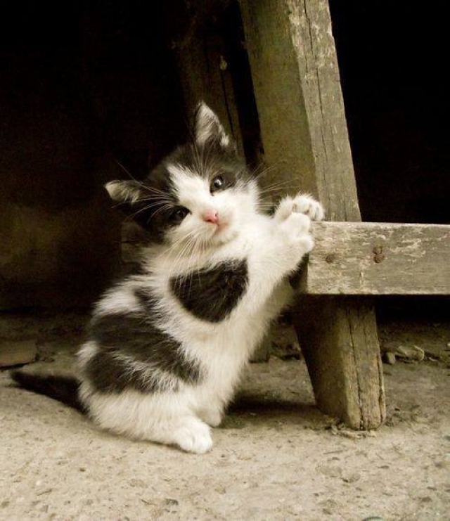 Ik steun met mijn pootjes op een houten balk om uit te blazen . Ik speel graag in deze schuur waar muisjes wonen. Ze maken mijn leven boeiend !