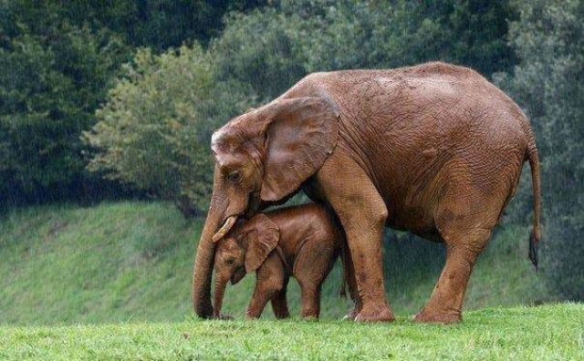 schuilen voor de regen onder moeders para.....buik!