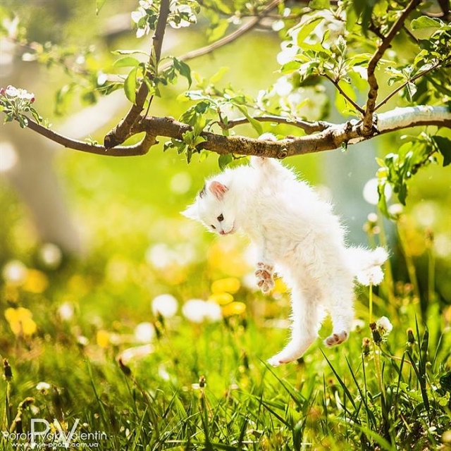 Ervaring is de beste leerschool ... In dit prille lentelandschap kan deze jonge poes het uittesten !