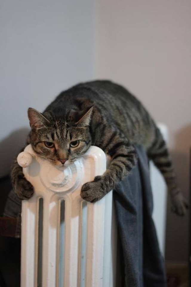 Vroeger lag de poes , als het koud was , voor de kachel . Nu ligt hij op een radiator ... Wat is het charmantst ?