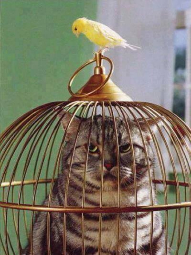 Poesje jij zijt gevangen in een kooitje , ik vlieg vrij PIEP PIEP PIEP !!!