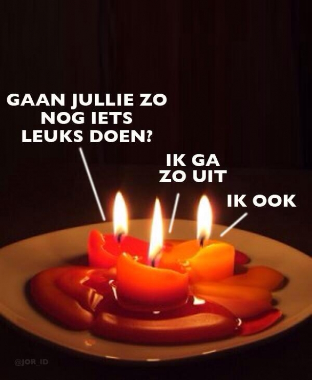 ik blijf thuis, er moet iemand de kaarsen uitblazen