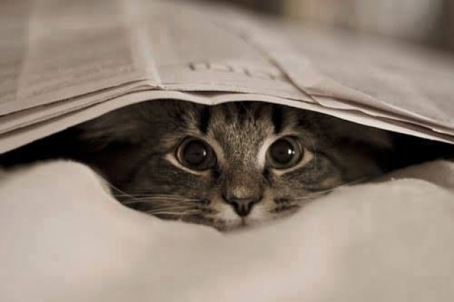 Ik ben onder de paperassen bedolven ... Zo kan ik mijn baasje observeren en hem heimelijk gezelschap houden !