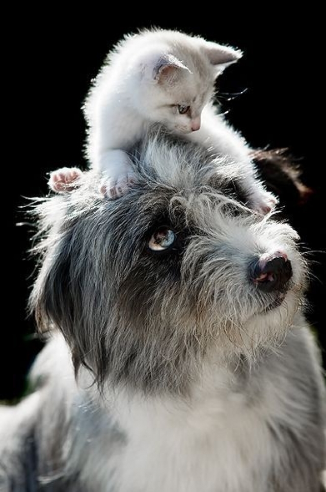 Ik speel graag met de lange haren van Woef ... Soms vindt hij het fijn , maar soms ook niet ! Elkaar plagen is om liefde vragen ...