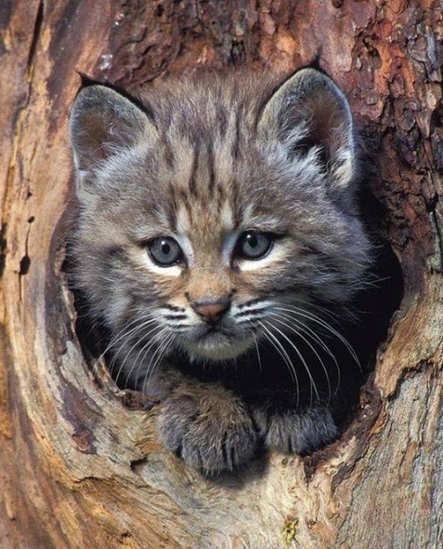 Ik ben wel familie van de poezen , maar behoor tot de lynxen . Toch heb ik ook een lief snoetje en fonkelende oogjes . Ik schuil in een boom en houd alles goed in de gaten om een prooi te grijpen !