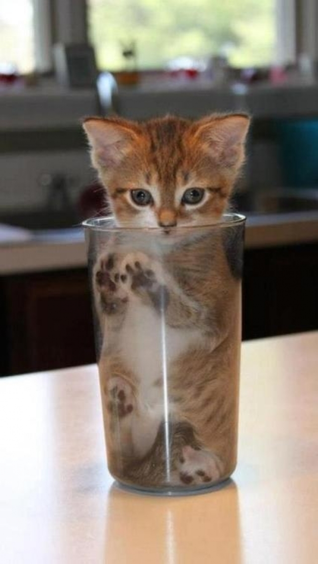 Ik heb mij in het glas van mijn baasje verstopt ... Als hij dit merkt , heeft hij plots geen dorst meer , maar zal hij lachen om mijn initiatief . Lachen werkt ontspannend !