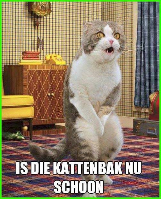 Als je een binnenhuiskat bent , moet je voor een dringend probleem beroep doen op een kattenbak . Iedere dag moet die schoongemaakt worden voor de hygiƫne , maar als het vergeten wordt , heb ik er een afkeer van . Daarom miauw ik erop los . Snel , help me !