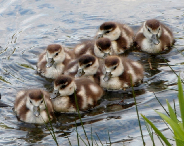 alle kleine eendjes zwemmen in het water.......