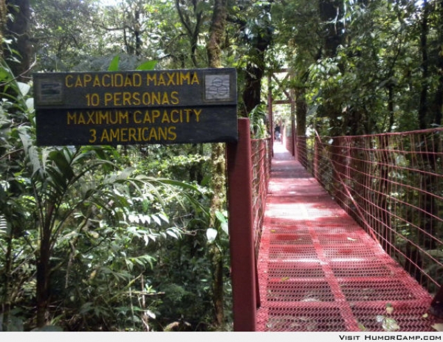 10 eigen mensen tegelijk op de brug, ofwel 3 Amerikanen. 't zal komen doordat er meer dikke Amerikanen zijn...