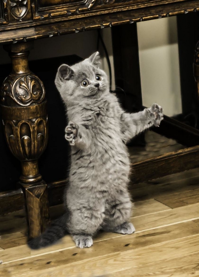 Ik sta op mijn achterste pootjes en houd mijn voorpootjes gespreid om ... een zacht kussen op te vangen . Het wordt mijn knuffelkussen en ik zal het extra verzorgen . Mijn droom wordt werkelijkheid !